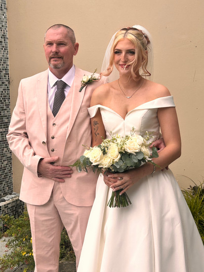 Katie wanted something simple but full of movement and very bouncy. The bouquet included a range of white roses of all different sizes to give depth and layers. Wax flower was also used through the bouquet to allow for lots of movement, these flowers are the perfect accent to create a whismsical feel. To achieve the bounciness of this bouquet, accents of fern were placed thorughout as it is a very light, dancy foliage that allows for the simple yet bouncy feel Katie wanted.